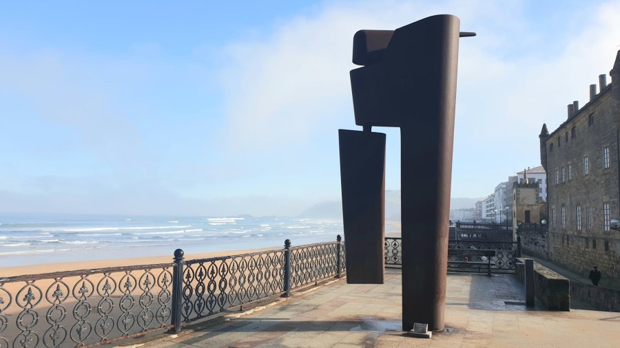 Instalada en el mirador situado al final del malecón junto al Palacio de Narros. Un mirador que asoma al mar desde donde apreciarás unas bellas vistas de la playa de Zarautz, ‘La Reina de las Playas’.